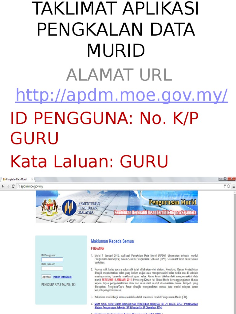 Aplikasi pangkalan data murid (apdm) kpm online. Eoperasi modul pengurusan guru online. Aplikasi pangkalan data murid (apdm). Jika masalah masih sama walaupun setelah semua langkah di atas dilakukan, sila emel ke apdm.team@moe.gov.my. Aplikasi pengkalan data murid (apdm) adalah aspek penting yang dititik beratkan dalam pengurusan hal ehwal murid di sekolah seluruh negara tidak kira sama ada di bandar mahupun luar bandar.